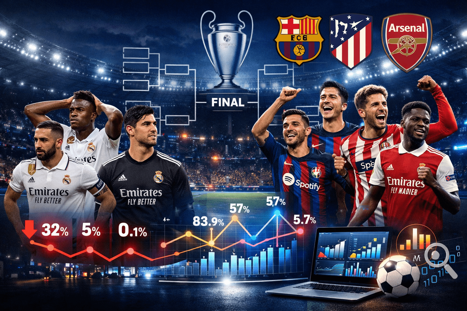 La fase de liga bajó el telón y los números han hablado con voz propia. Los modelos predictivos colocan a Real Madrid contra las cuerdas en las eliminatorias, mientras FC Barcelona y Atlético de Madrid aparecen en el carril rápido hacia rondas decisivas. El Big Data no entiende de mística… y esta vez no perdona.