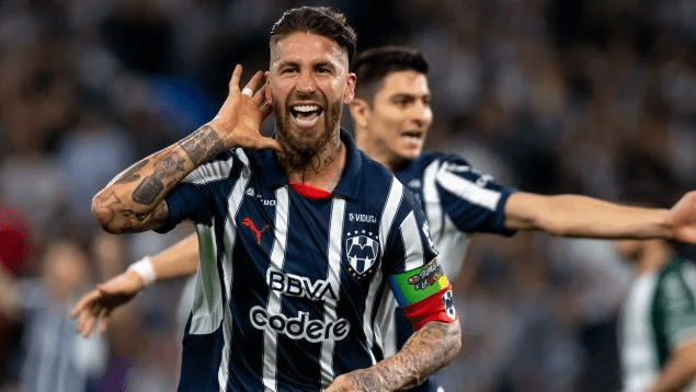 Sergio Ramos celebrando un gol con Rayados. | EFE