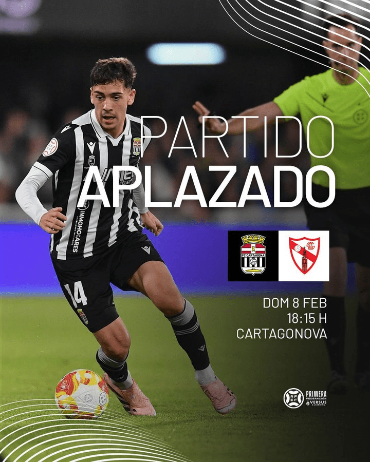 El encuentro debía disputarse este domingo a las 18:15 horas en el Estadio Cartagonova. No era una cita cualquiera: ambos equipos están inmersos en la pelea por mantenerse en la categoría. El Cartagena marca ahora mismo la línea de salvación, mientras que el Sevilla Atlético busca recortar distancias desde la zona baja. Un choque directo que tendrá que esperar.